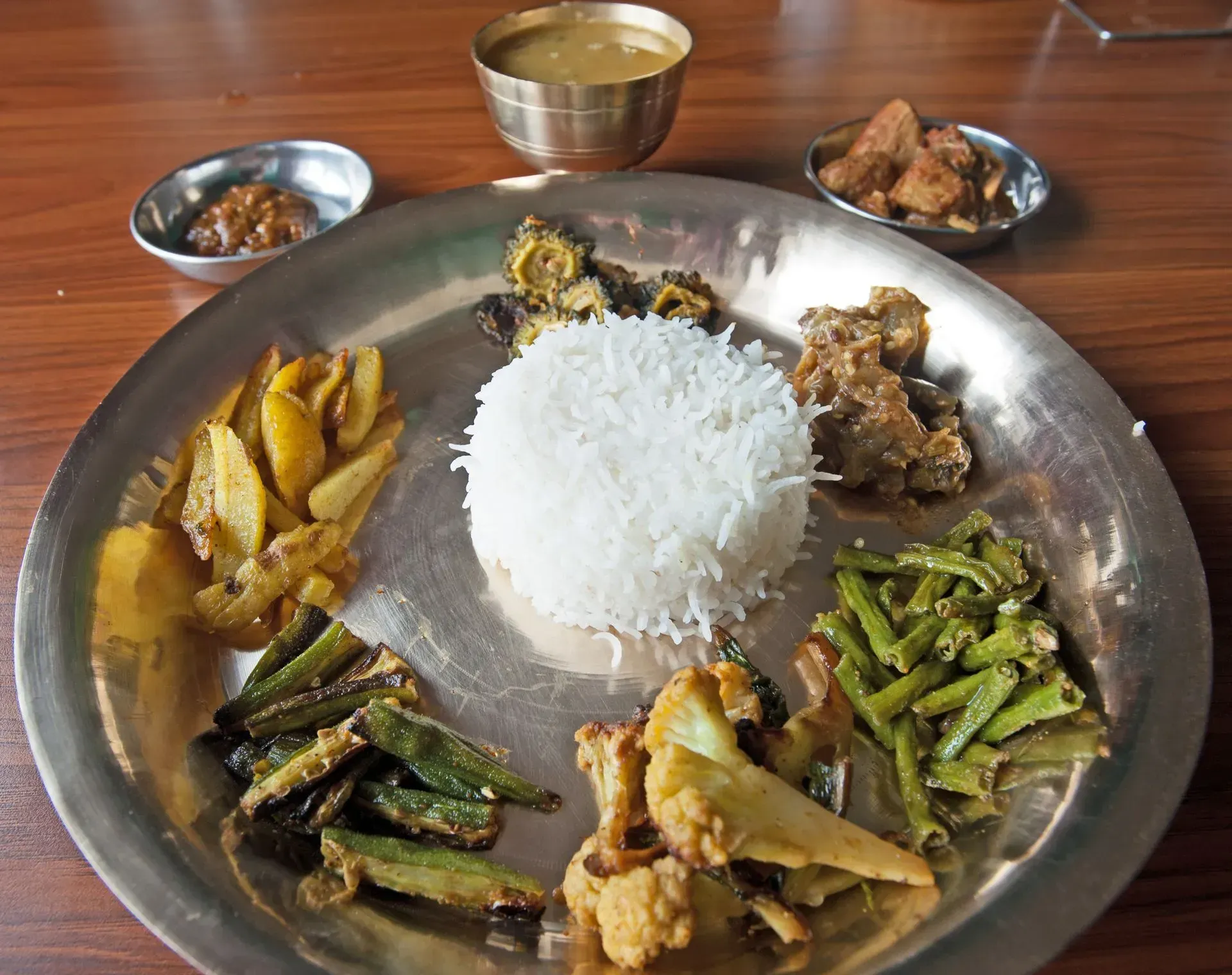 Later we strolled through town and up into its more rural hinterland of neatly terraced paddies threaded by narrow winding roads and tracks. An ancient and once important trading settlement, Panauti remains a significant religious site because of its location at the confluence of two rivers. It also boasts the 13th-century Indreshwar temple, reputedly Nepal's oldest. Pots and pans hanging from its tiered roof are offerings from couples hoping for a happy and prosperous family life!