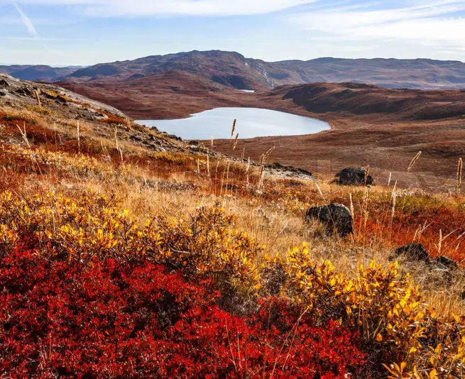 Southern Greenland is dotted with charming towns like Narsarsuaq, home to lush valleys shaped by Norse history; Nanortalik, known for its stunning mountains, ice-filled fjords, and warm village atmosphere; and Narsaq, a colourful settlement surrounded by rolling green hills, glaciers, and rich Viking heritage. Qaqortoq charms visitors with art-filled streets, hot springs, and rolling green landscapes. Together, they showcase the gentler, greener side of Greenland.